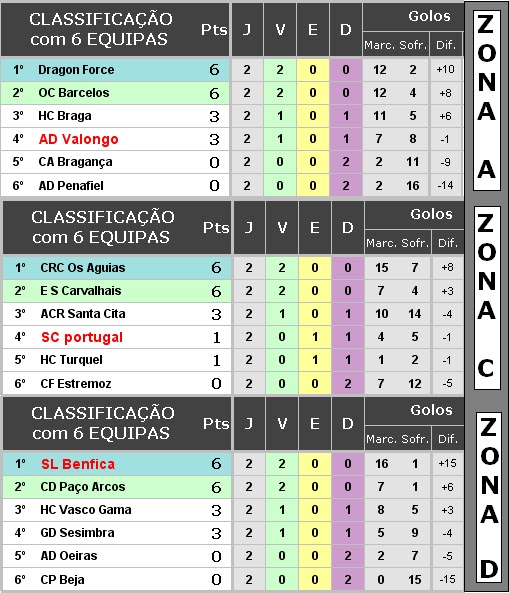 | 4º | ↓ | CH Paço Rei | 6 | 6 | 2 | 0 | 3 | 40 | 55 | -15 |
